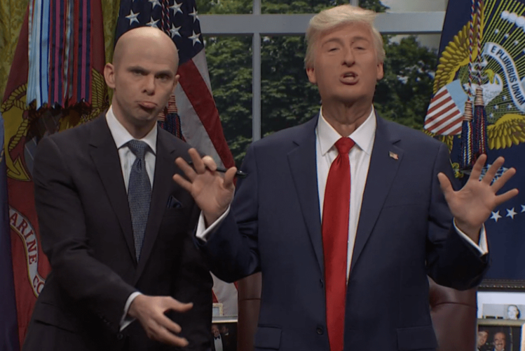 Stephen Miller, portrayed by Mikey Day, joined the scene to assist Trump in signing more executive orders. Among the hilariously exaggerated changes Trump proclaimed: