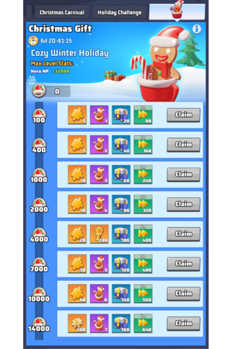 For every ten candies turned in, players are awarded one point towards their Christmas décor and receive a Christmas gift box filled with random rewards based on specific drop rates.