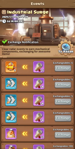 As part of the event, be sure to participate in radar events where you can collect [mechanical components].
