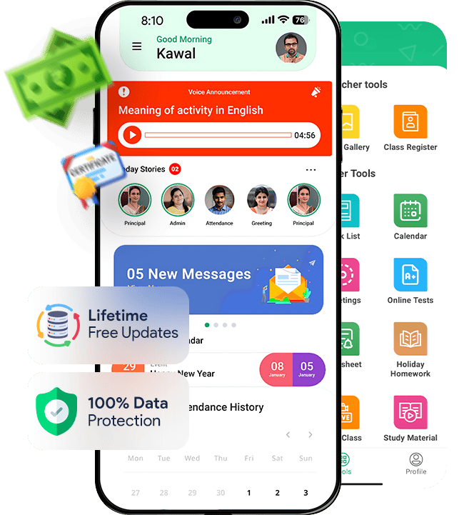 • Mobile App Integration: Android & iOS apps for teachers, students, and parents.