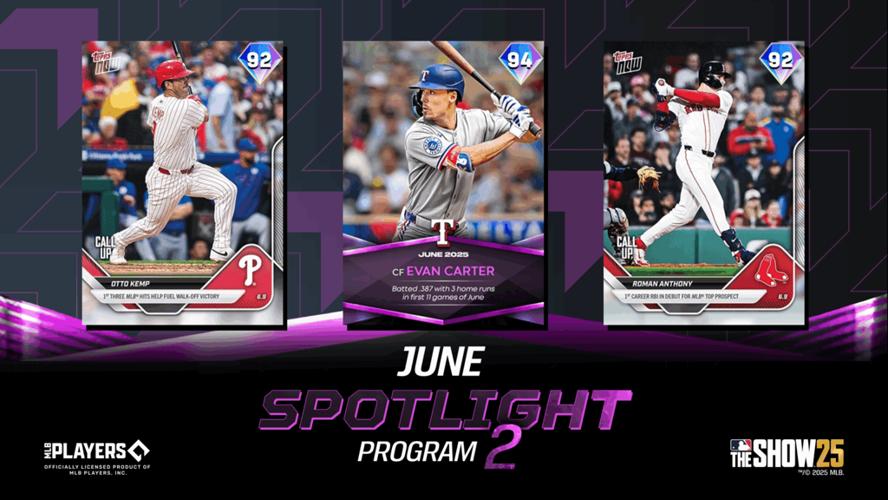 For June Spotlight 2, players are tasked with completing a series of stat missions to earn rewards. These include accumulating 750 experience points while using June Drop 2 players, and achieving specific in-game feats such as securing five hits with Topps Now Otto Kemp, or three extra-base hits with Topps Now Roman Anthony. Power hitters can aim for three or more home runs with Spotlight Drop 1 Hunter Goodman, or a total of four home runs using primary shortstops. Additionally, players should strive for 13 hits with primary outfielders, seven innings pitched with primary starting pitchers, and 15 strikeouts with any pitcher. To round out the challenges, accumulating 15 runs across any players is also required.
