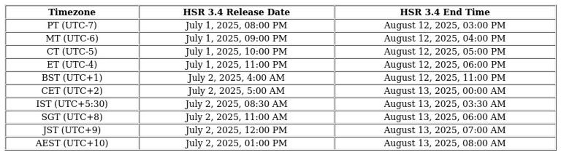 For regions outside North America, the release will occur on July 2, 2025, in time zones at UTC-3 or later. European gamers can expect to log in shortly after midnight, while players in Asia might find the update available during early morning hours or around midday.