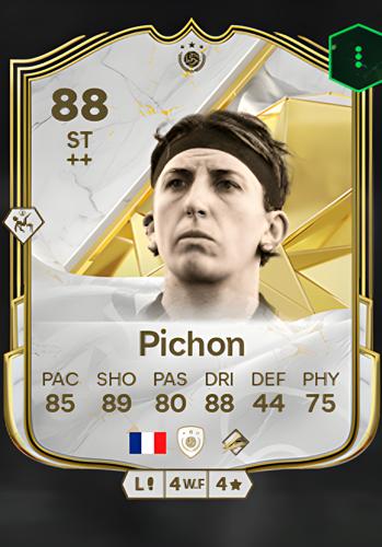 Marinette Pichon's Icon card shines as a formidable Striker with an impressive overall rating of 88, making her a valuable asset on the field. With a pace rating of 85, she can swiftly maneuver past defenders, while her shooting rating of 89 ensures precision in front of the goal. Her dribbling prowess, rated at 88, allows her to navigate tight spaces with ease, creating scoring opportunities. Although her passing and physicality ratings are 80 and 75 respectively, they complement her attacking capabilities, making her a well-rounded offensive threat. This card is ideal for breaking through defenses and capitalizing on scoring chances, effectively sealing victories in tight matches.