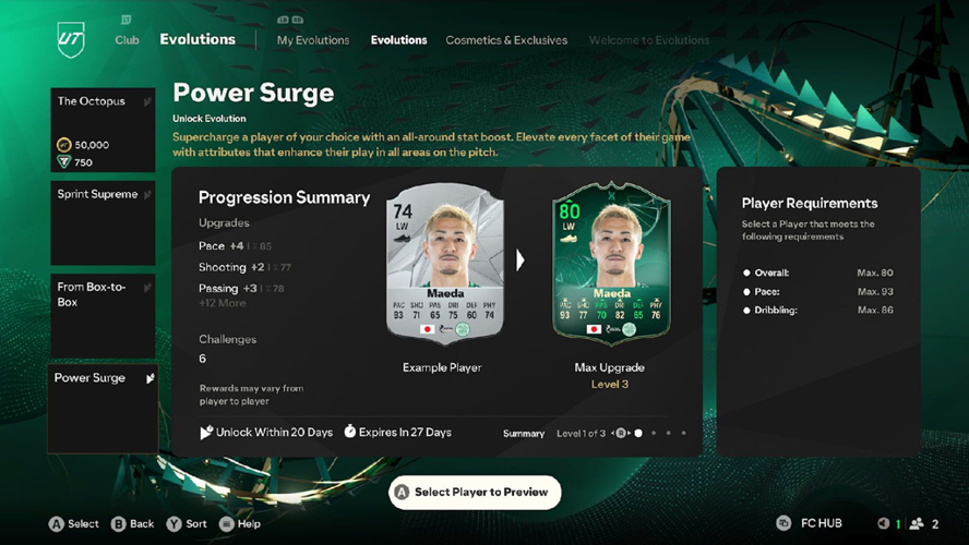 Not every player in the game qualifies for this Evolution. Only those who meet the following criteria can participate in the Power Surge Evolution: