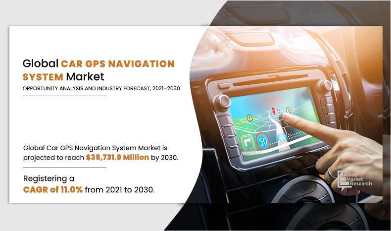 According to a recent report published by Allied Market Research, titled, “Car GPS Navigation System Market by Component, Vehicle Type, Screen Size, Propulsion, and Sales Channel: Global Opportunity Analysis and Industry Forecast, 2021–2030,” the global car GPS navigation system market was valued at $13,074.0 million in 2020, and is projected to reach $35,731.9 million by 2030, registering a CAGR of 11% from 2021 to 2030.