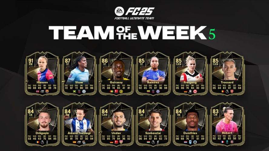 FC 25 has unveiled Team of the Week 5, featuring impressive new cards. This week's highlights include standout performances from Hansen and Shaw.