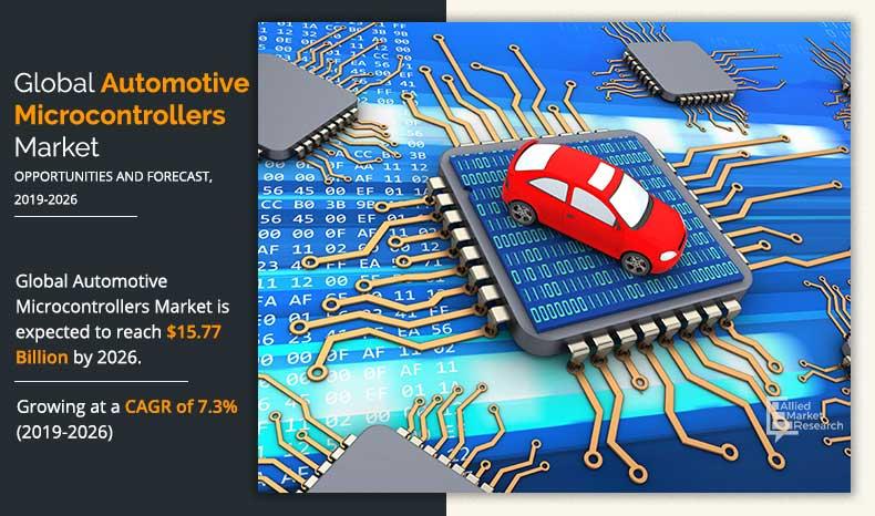 According to a recent report published by Allied Market Research, titled, "Automotive Microcontrollers Market by Application, Technology and Vehicle Type: Global Opportunity Analysis and Industry Forecast, 2019–2026," the global automotive microcontroller market was valued at $9.06 billion in 2018, and is projected to reach $15.77 billion by 2026, registering a CAGR of 7.3%.