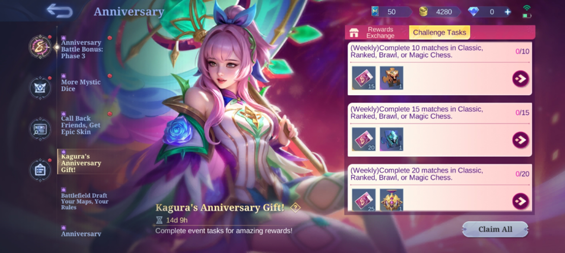 - Remember, challenge tasks reset every Monday at 0:00 server time, so plan your matches accordingly.