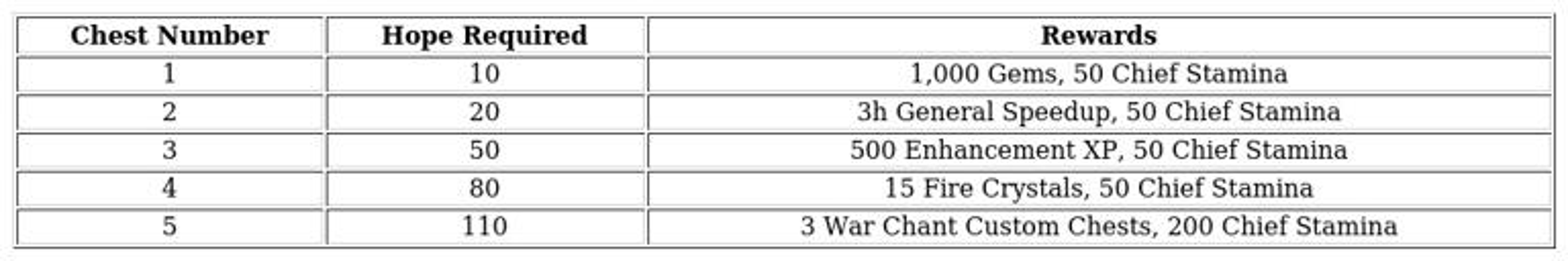 These chests are filled with various rewards, with higher hope requirements yielding better treasures.