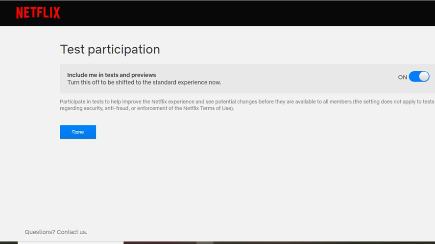 • Find the test participation option, and toggle the slider to enable it.