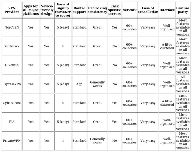 In terms of user-friendliness, we assessed VPNs that offer multi-platform support and live chat capabilities. Below is a table outlining how each provider fared against our ease-of-use criteria.